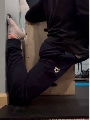 You can see in the photo below, I am in the “couch stretch”, but I use the (place holder) to push against with my other leg.