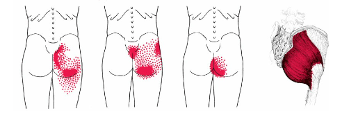 - Gluteus maximus: Aching pain in the buttocks or near the tailbone